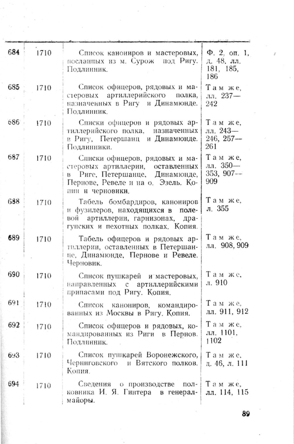 Списки офи церов, рядовых и ма-