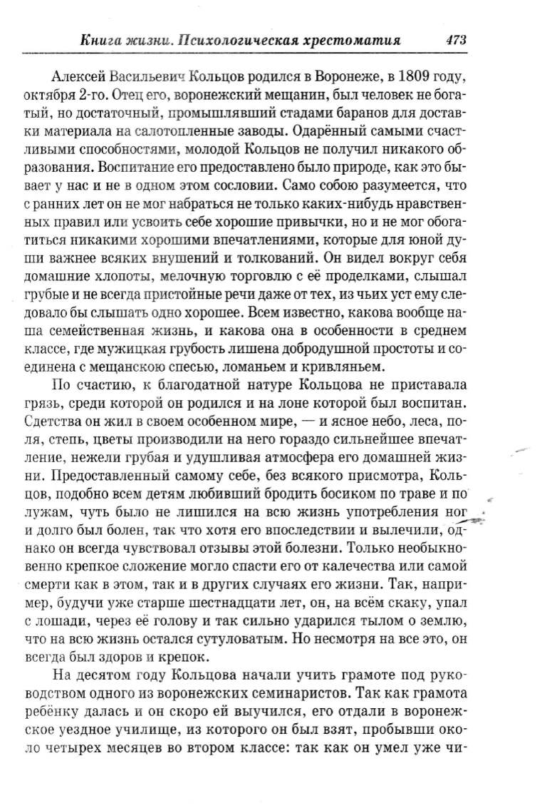 ливыми способностями, молодой Кольцов не получил никакого об