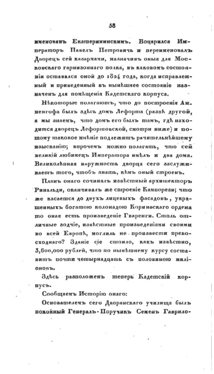 Днорец·ь сей кнанр~а~и, на.'\начивъ оны11 ДAII Мос