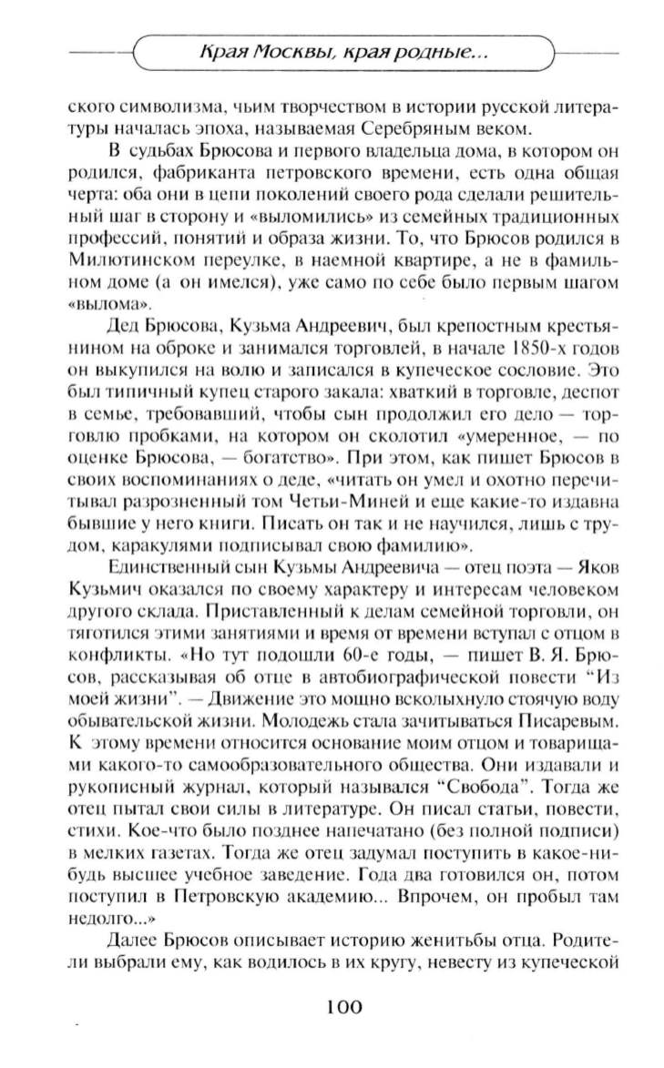 профессий , понятий и образа жизни. То , что Брюсов родился в