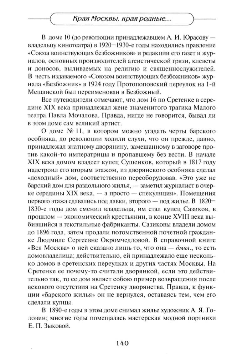 ко домов в сретенских переулках и других частях Москвы. На