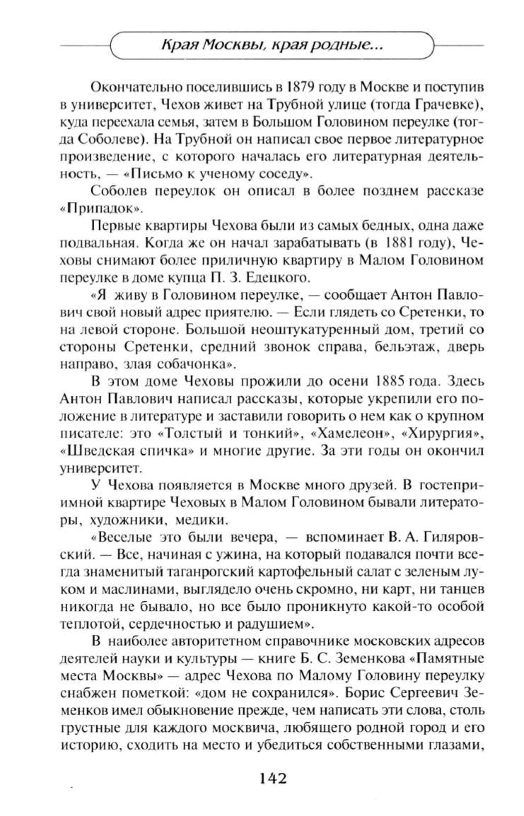 места Москвы >>- адрес Ч ехова по Малому Головину переулку