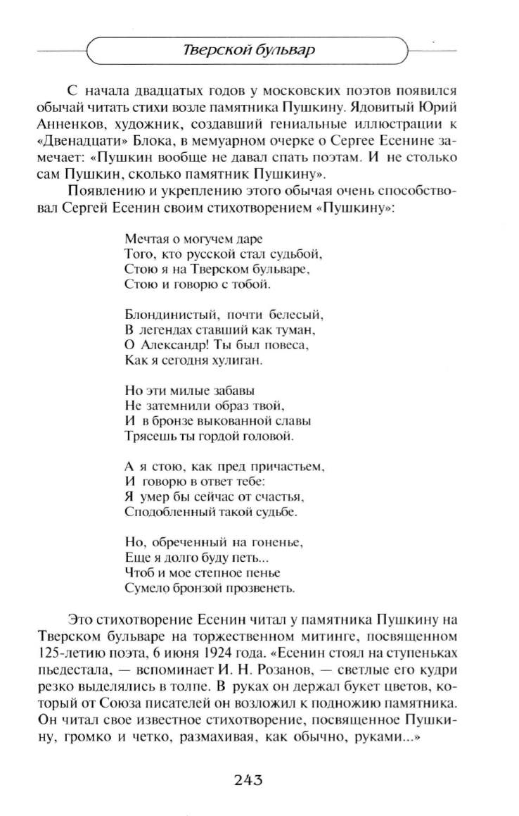 Это стихотворение Есенин читал у nамятника Пушкину на