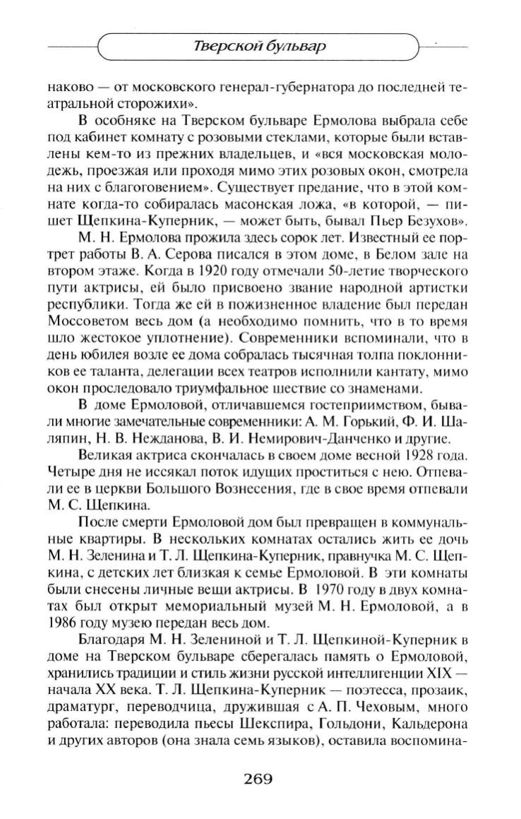 доме на Тверском бульваре сберегалась память о Ермоловой,