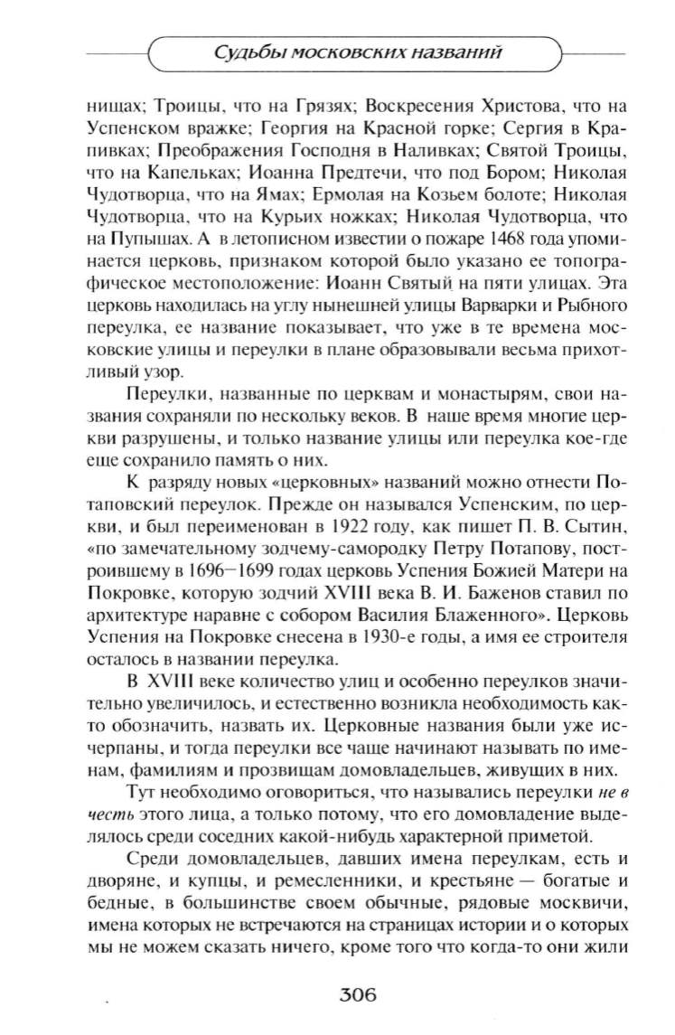 Переулки , назва нные по церквам и монастырям , свои на