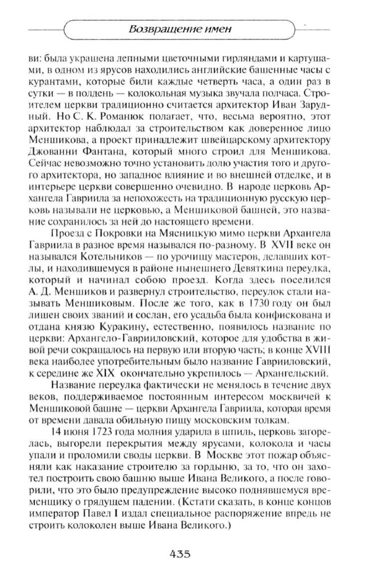 ковь назы вал и не церковью, а М еншиково й баш н ей , это назва