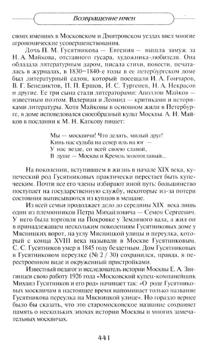 ге , в доме исповедовался своеобразный культ Москвы. А Н. Май