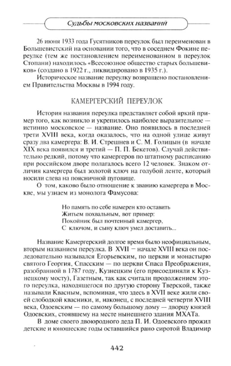 КАМЕРГЕРСКИЙ ПЕРЕУЛОК