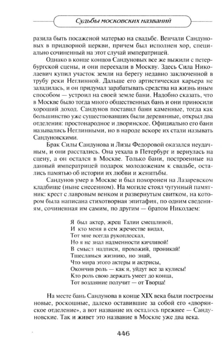 хороший доход . Сандунов поставил бани каменные, тогда как