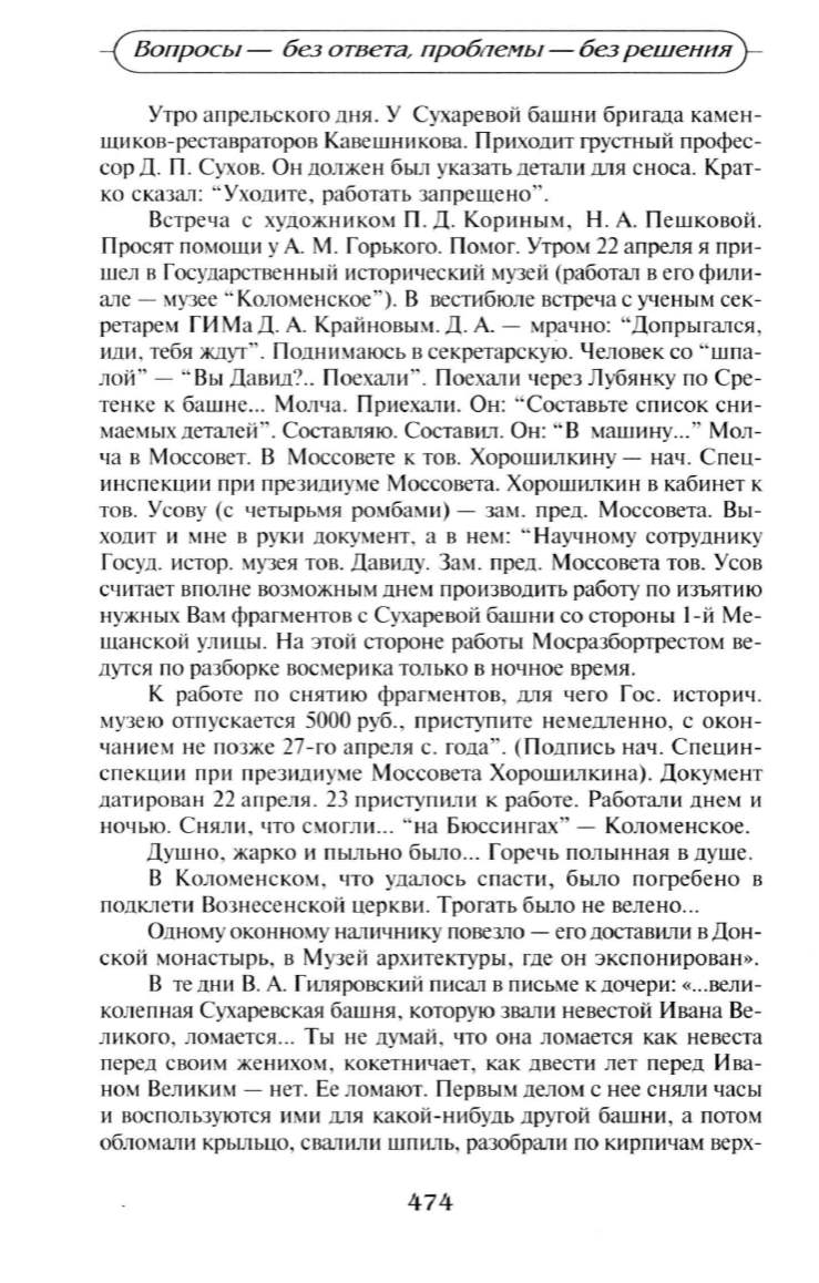 сор Д. П . Сухов. Он дол жен был указать детали для сноса. Крат