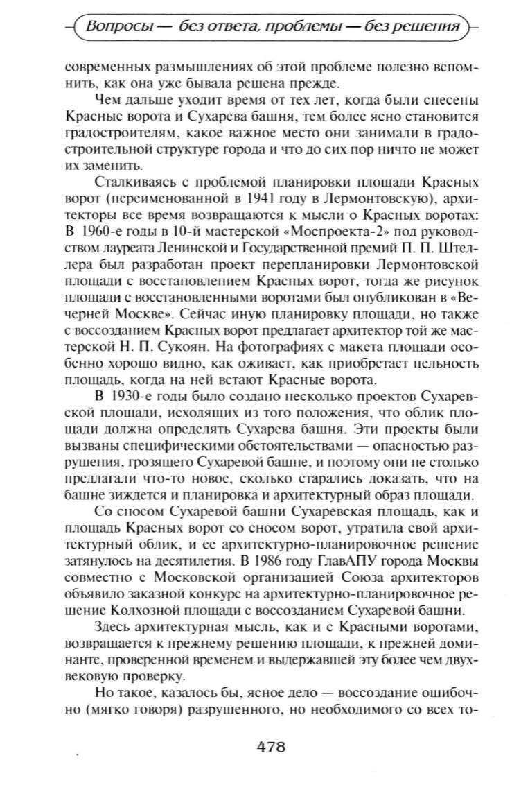 шение Колхозной площади с воссозданием Сухаревой башни.