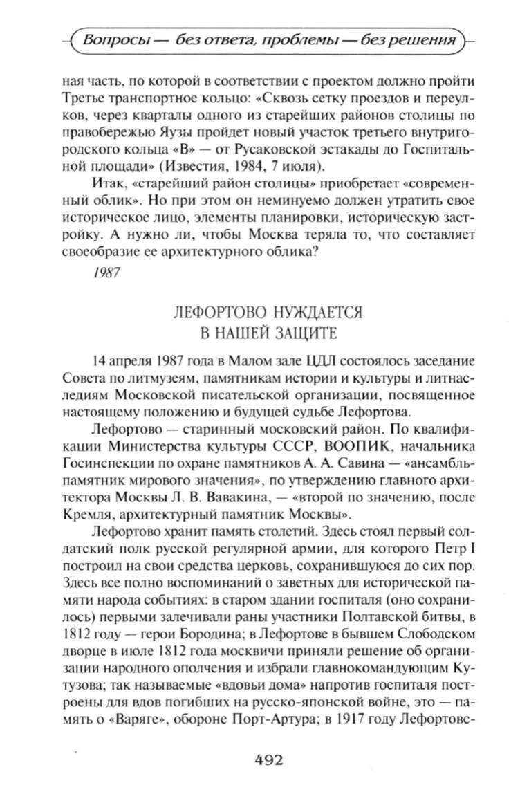 настоящему nоложению и будушей судьбе Лефортова.
