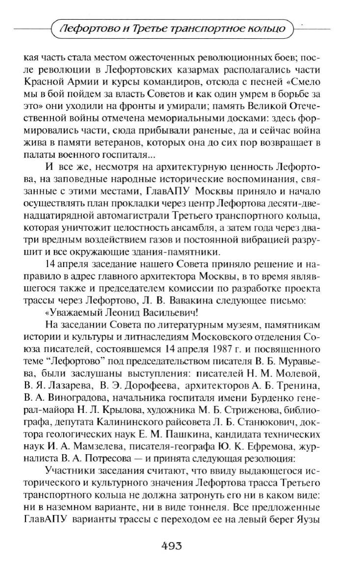 трассы через Лефортово , Л. В. Вавакина следующее письмо:
