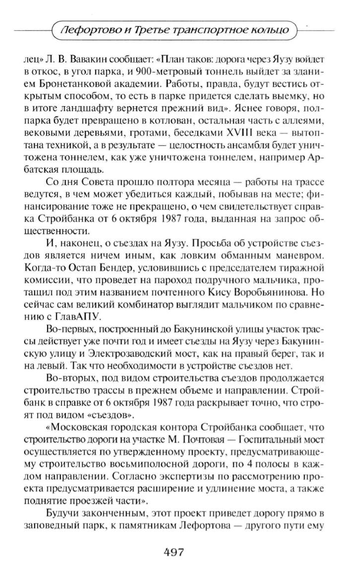 лец>> Л . В. Вавакин сообщает: << План таков: дорога через Яузу войдет