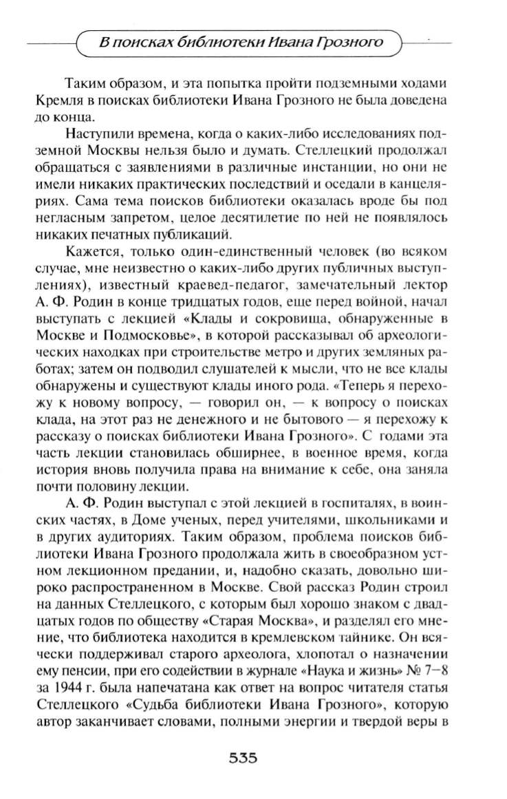 рассказу о поисках библиотеки Ивана Грозного>> . С годами эта