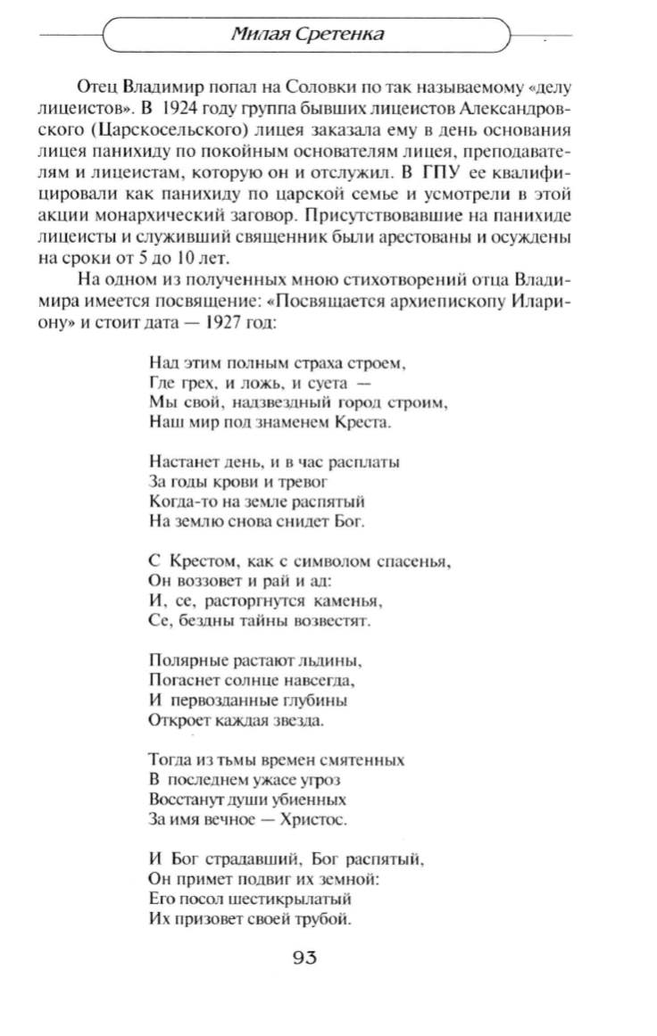 Н а одном из полученных мною стихотворений отца Влади
