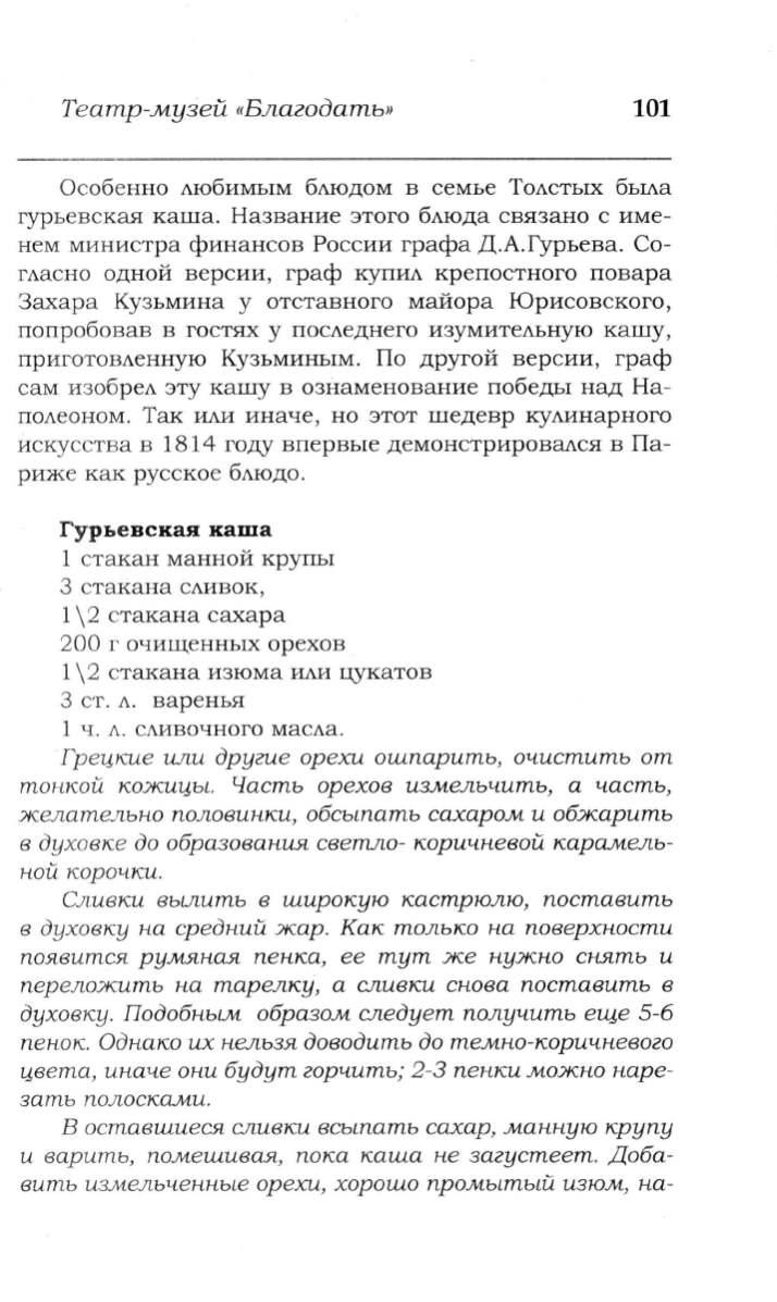 гурьевекая каша. Название этого блюда связано с име