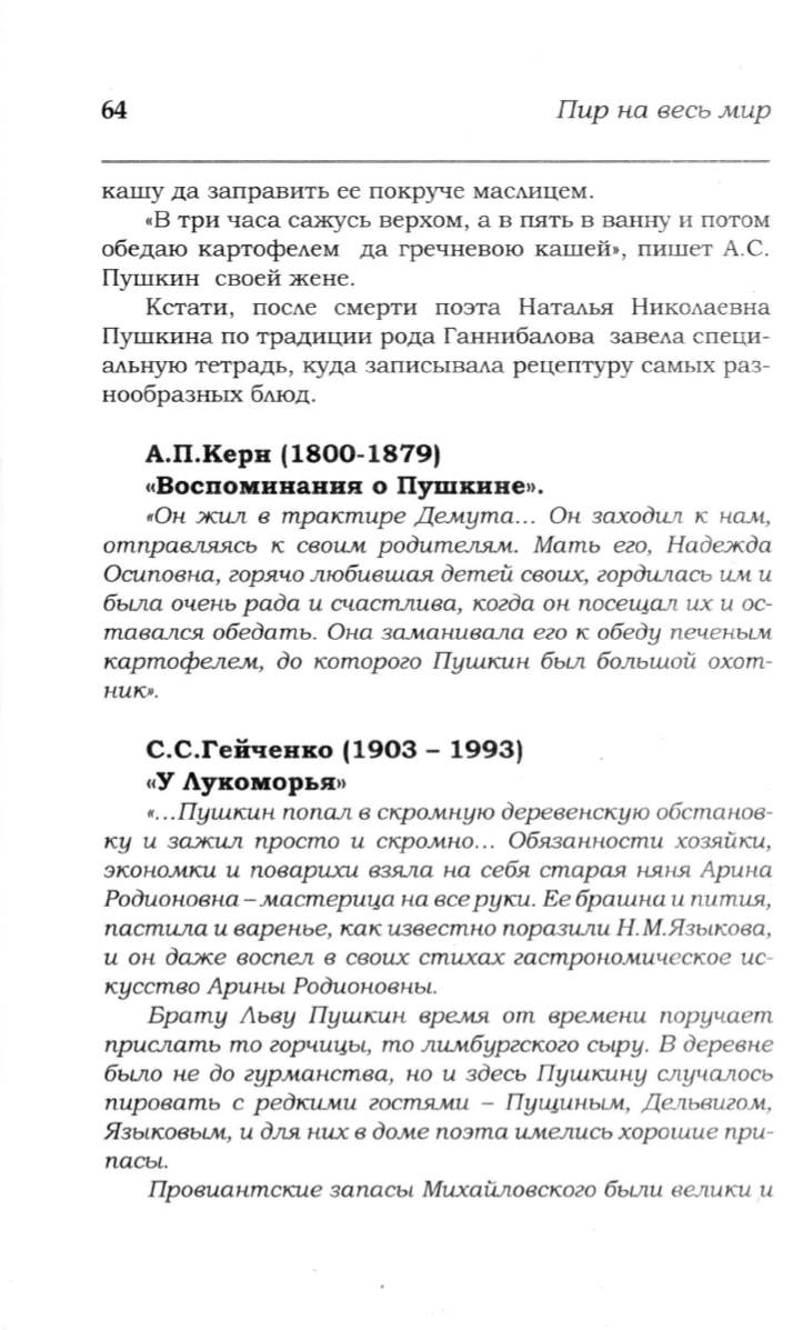 картофелем, до которого Пушкин. был большой охот