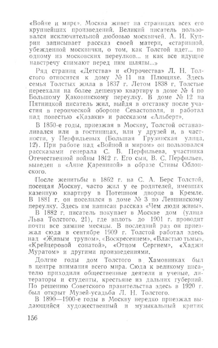 В 1850- е годы, приезжая в Москву, Толстой остана в