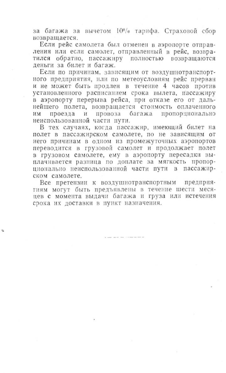 нейшего полета, возв ращается стоимость оnлаченного