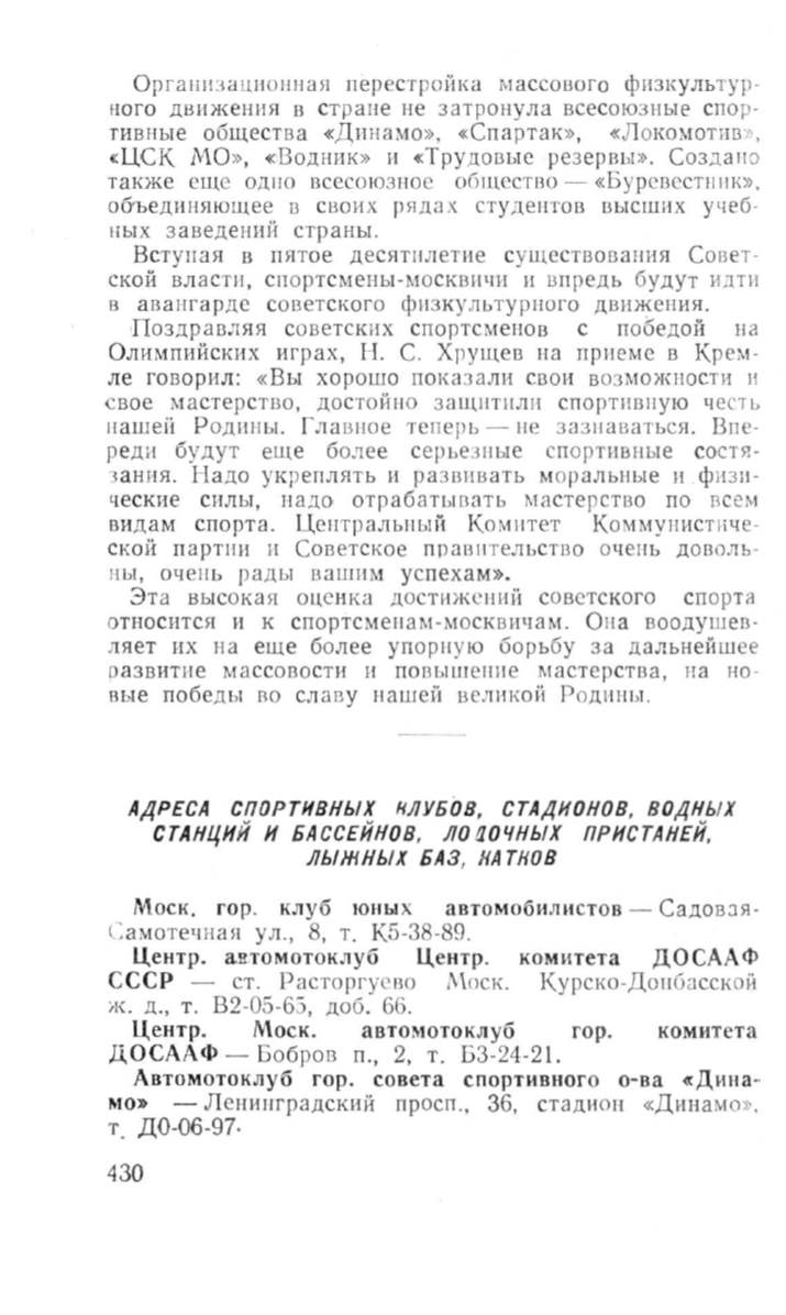 АДРЕСА СПОРТИВНЫХ 1/ЛУБОВ, СТАДИОНОВ, ВОДНЫХ