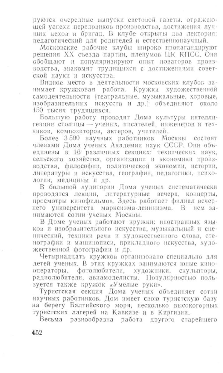 Ви дное место в деятельностн ~IOCI<OBCKIIX клубоr. за