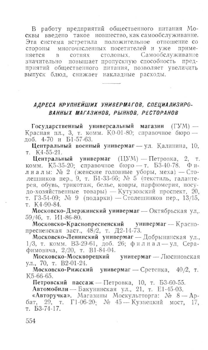 АДРЕСА НРУПНЕЙШИХ УНИВЕРМАГОВ, СПЕЦИАЛИЗИРО