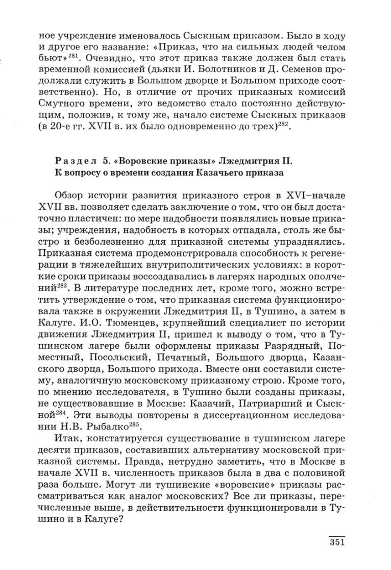 по мнению исследователя, в Тушина были созданы приказы,