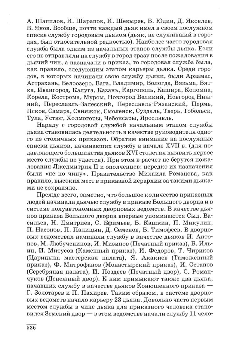 дов, в которых начинали свою службу дьяки, были Арзамас,