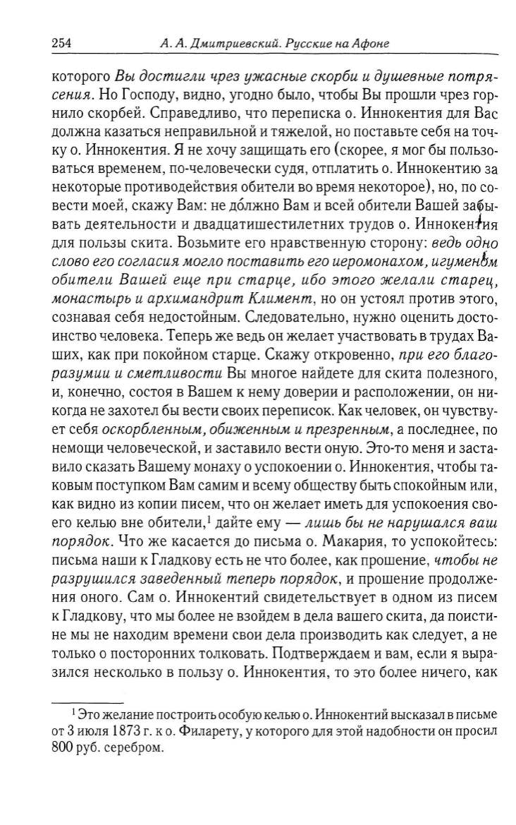 Это желание построить особую келью о. Иннокентий высказал в письме
