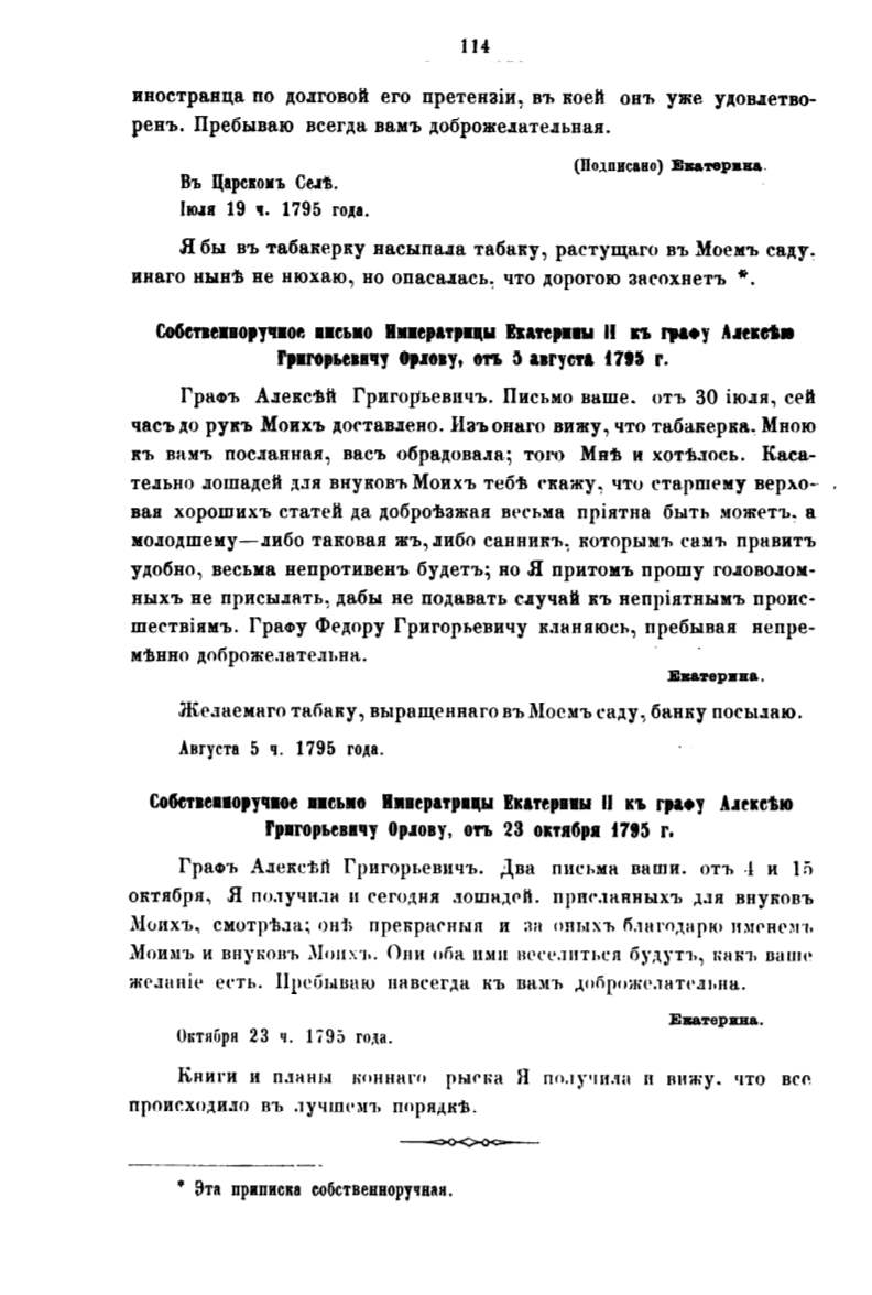 Собетаевворучвое ввеьмо И•вератрв•ы Еrатерввы