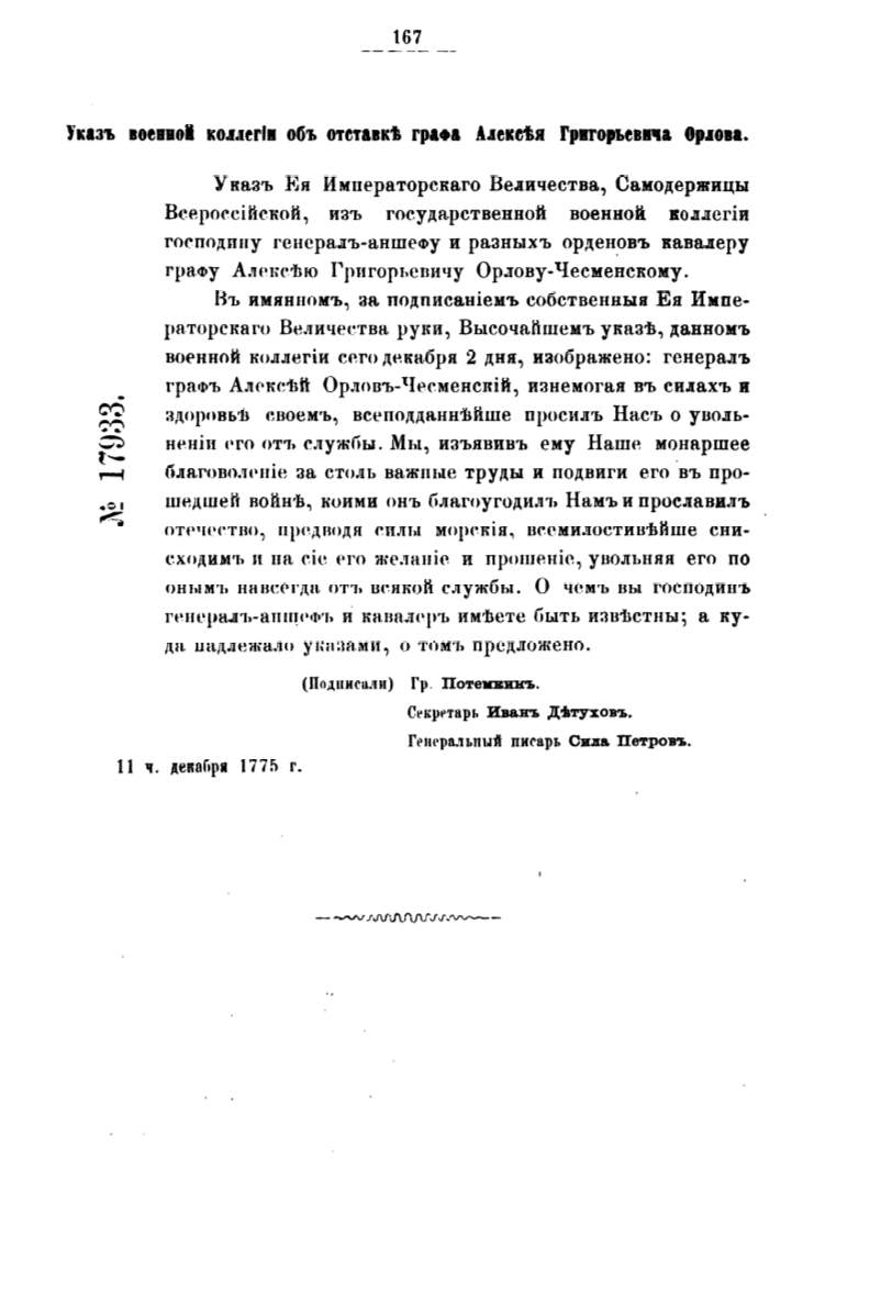 нt>нiи I'ГО отъ служliы. Мы, изъявивъ ему Нашн монаршее
