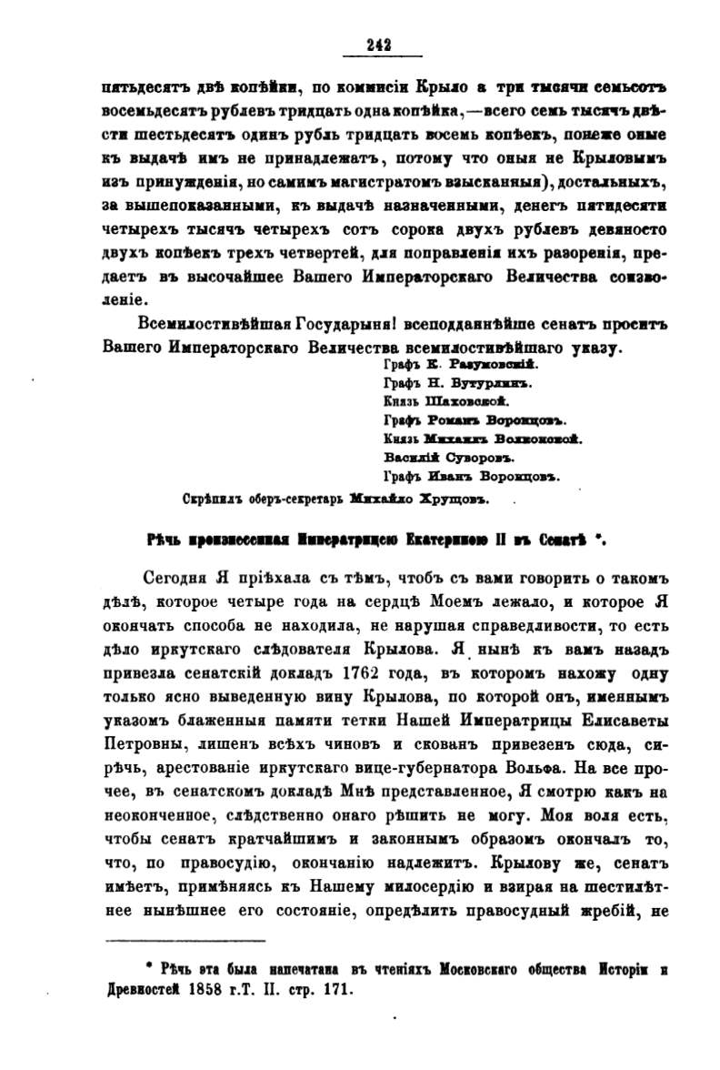 Всемuостив':Ьйшаи Государыни/ веепо)l:,u;ав.н1tйше сенатъ проеитъ