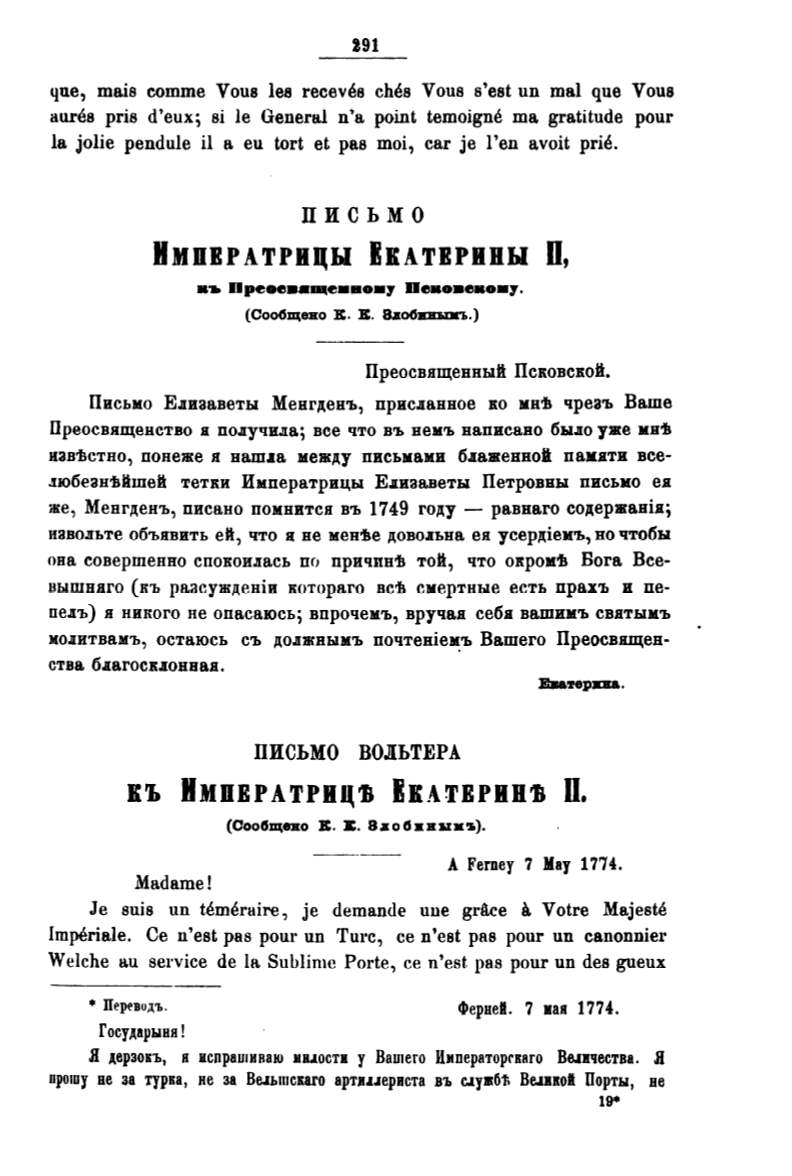 Письио Е.11иааветы Менr)l;енъ, прис.11аиное ко кн'.Ь чреаъ Ваше