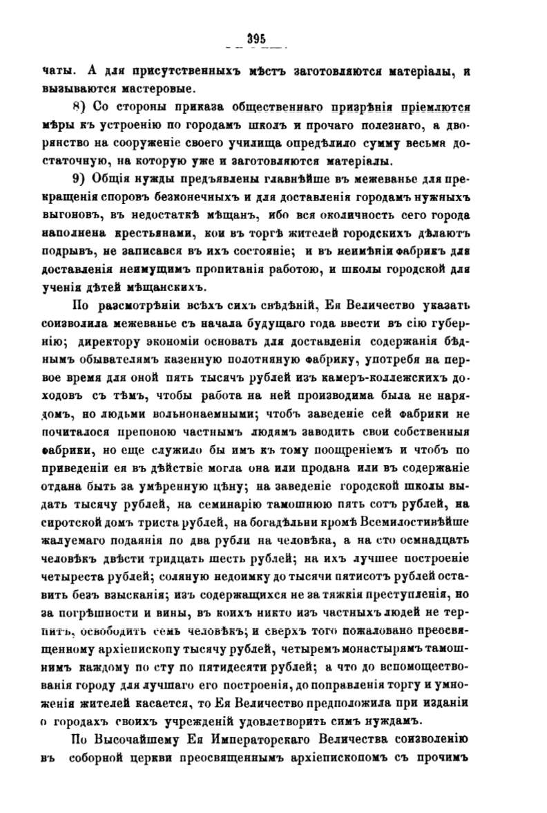кращенiя споровъ безконечныхъ и для доставленiя городамъ нужныхъ