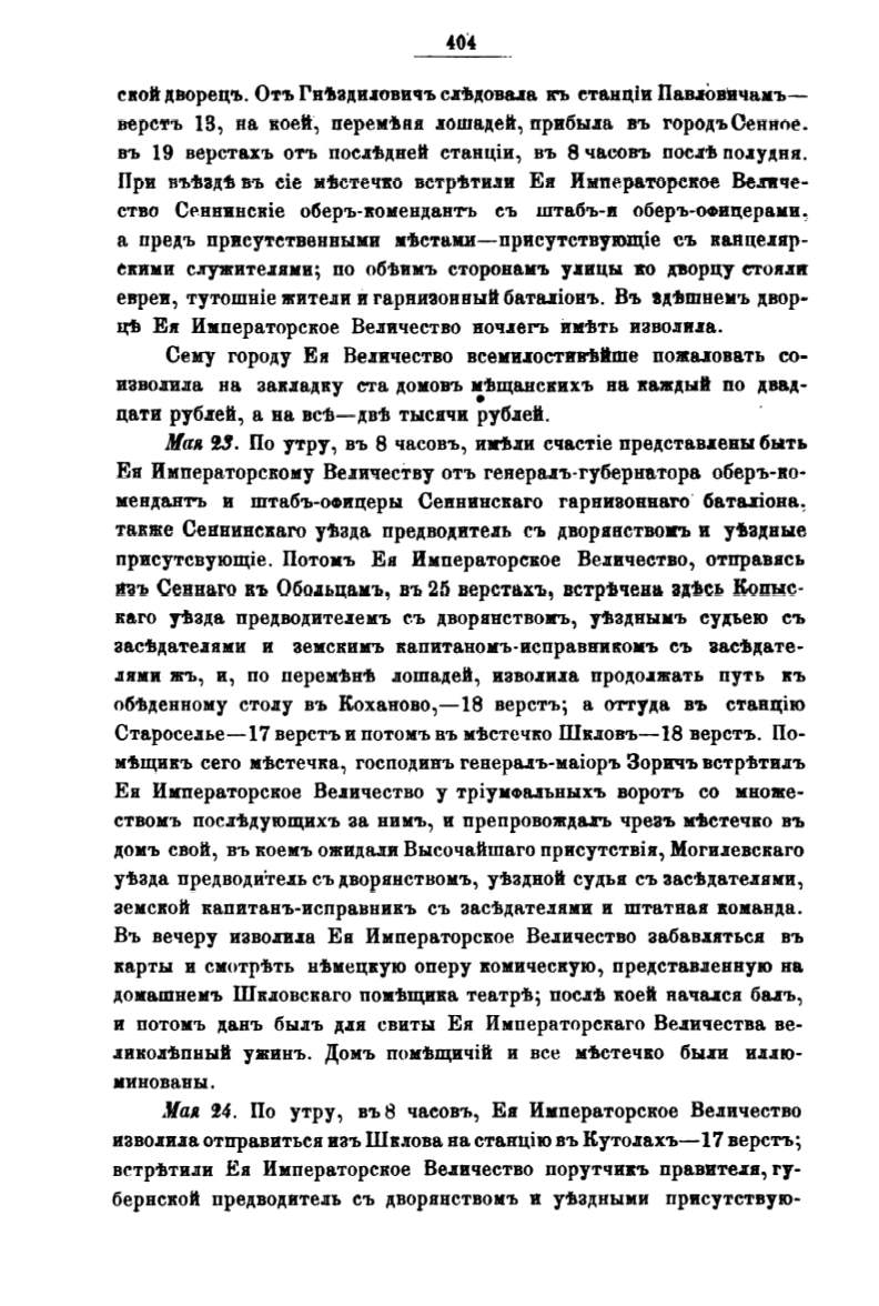 Староселье-17 верстъ и потом:ъ въ м:'.llстечко Шкловъ-18 верстъ. По
