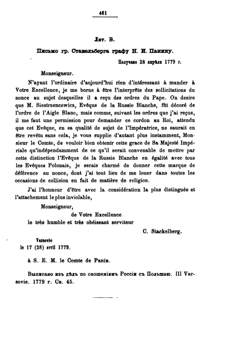 l'ordre de l'Aigle Blanc, mais comme, suivant les ordres que j'ai rel(us,
