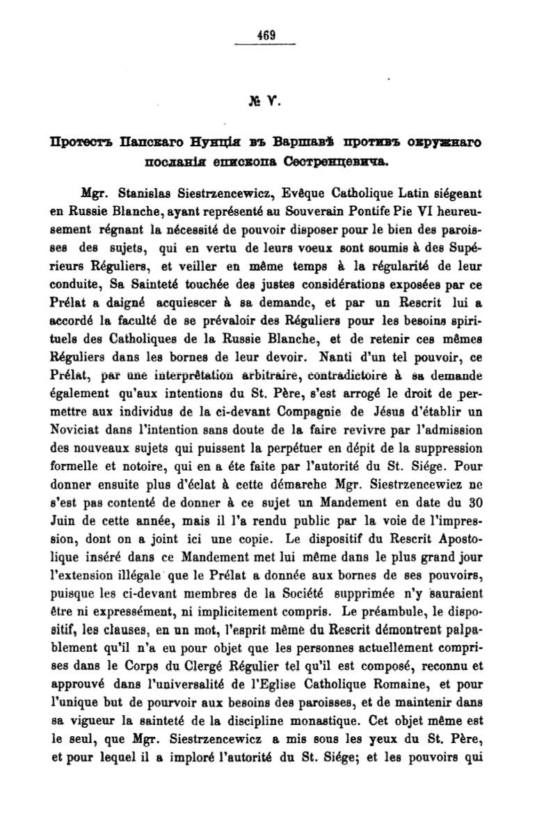 le seul, que Mgr. Siestrzencewicz