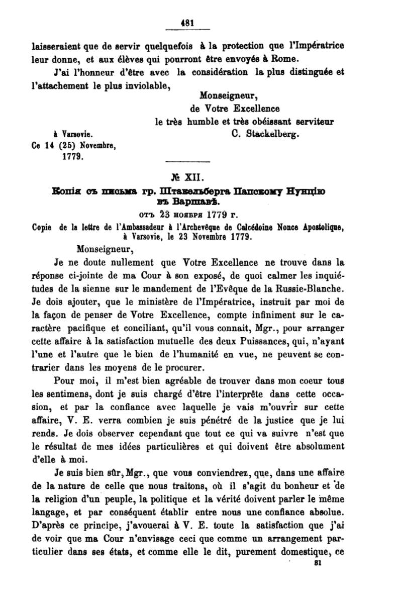 Varsovie, le 23 Novembre 1779.