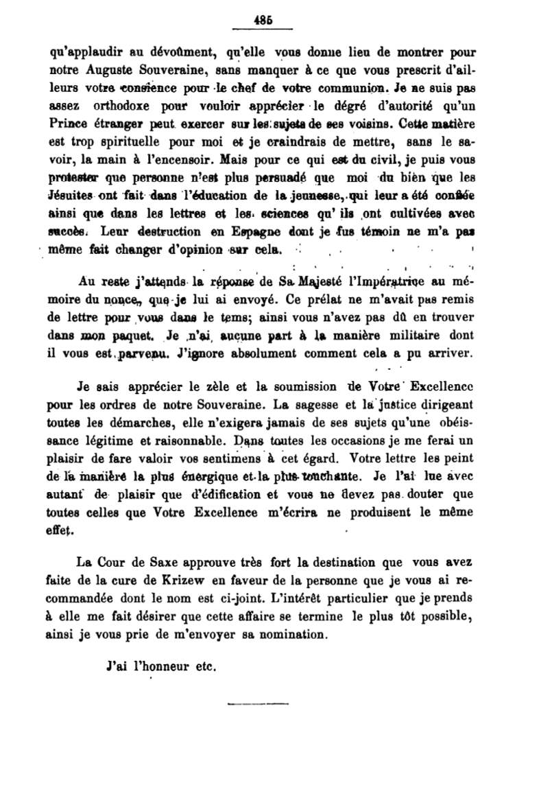 Je sais apprecier le zele et la soumission "de Votre · Ex.cellencc
