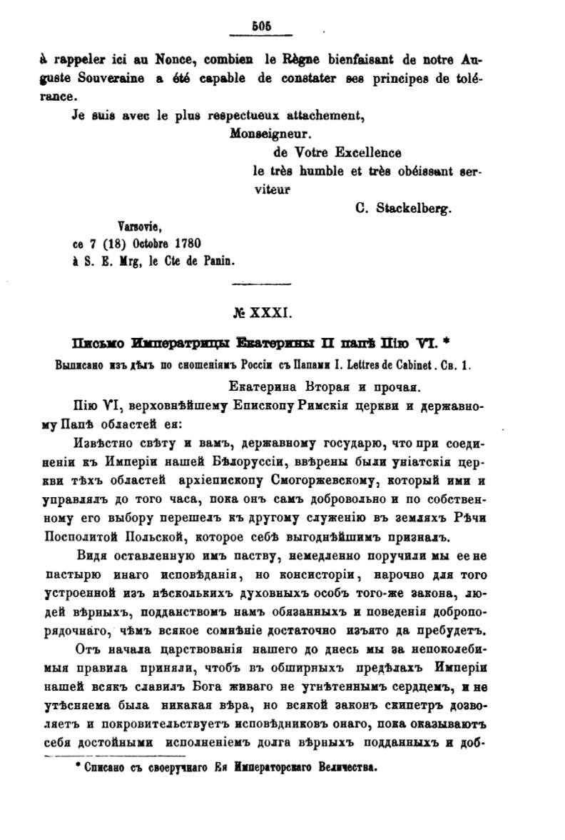 ПисЪJ[о :И.Ператрицы Еватер:пп.t П папi1 Пiю