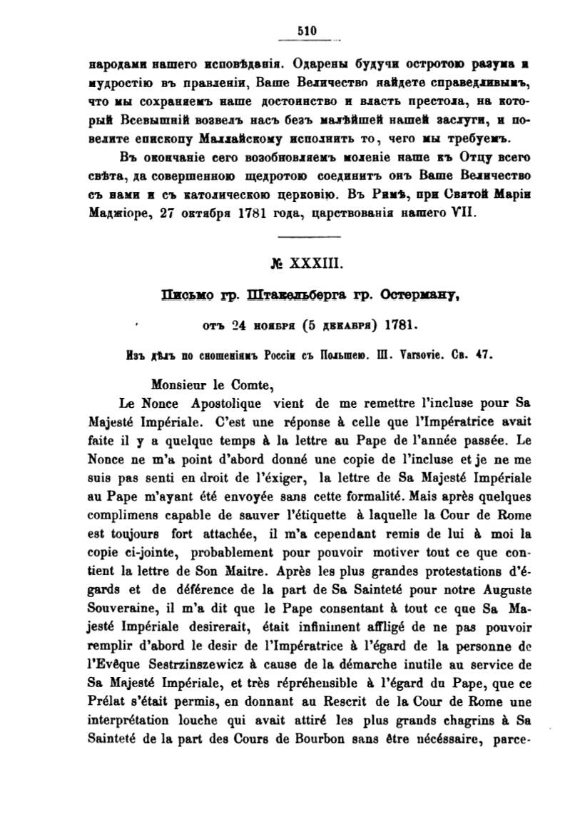 gards et de deference de la part de Sa Saintete pour notre Auguste