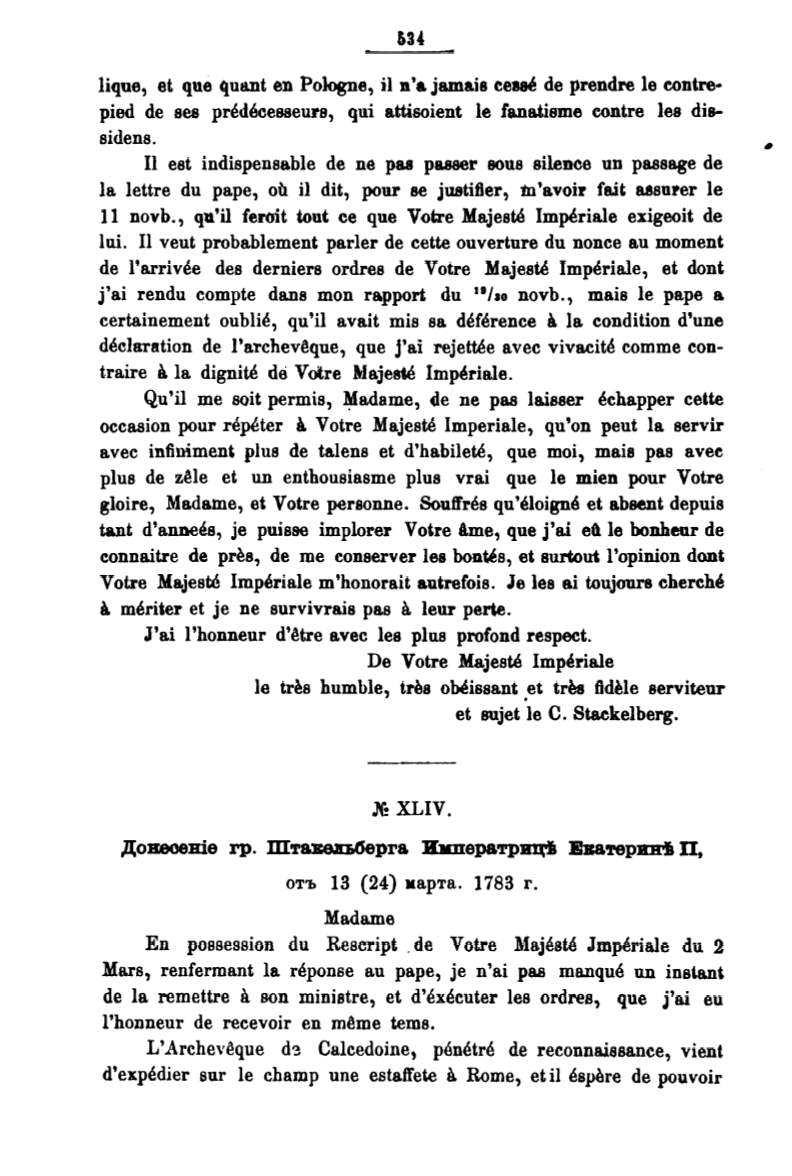 de l'arrivee des derniers ordres de Votre Majeste Imperiale, et dont