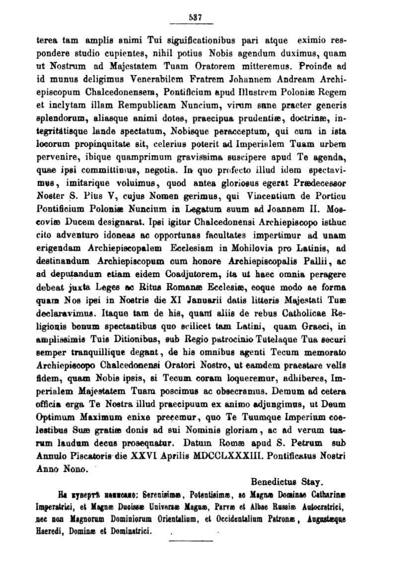 erigendam Archiepiseopalem Ecelesiam in Mohilovia pro Latinis, ad