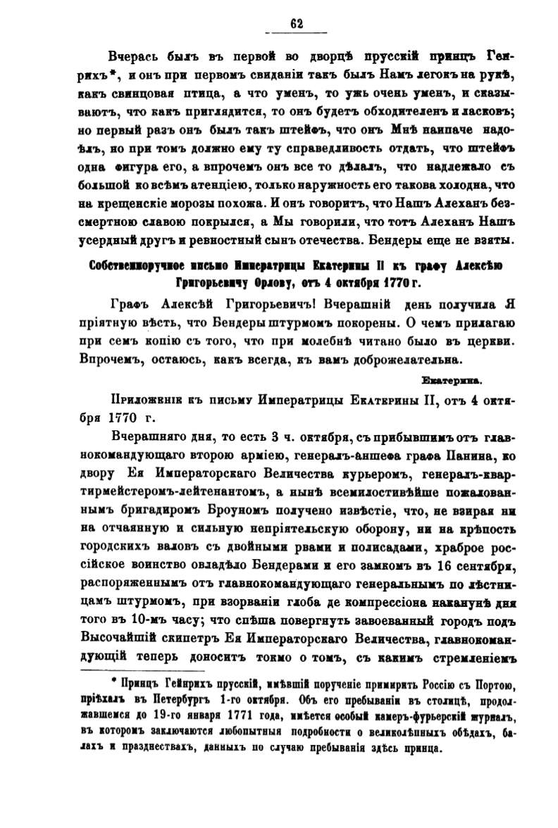 Првиц'Ь Геlирих'Ь прусскil, икtвmil поручеиiе nримирить Россiю с'Ь Портою,