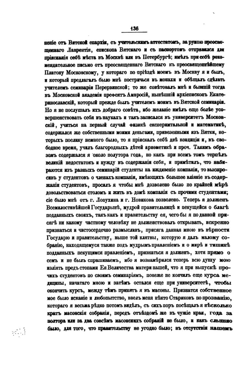 котораrо я весьма pi>JJ.Кo потоn виАt.rь, съ сих.ъ поръ посtща.аъ я вi>ско.п.ко