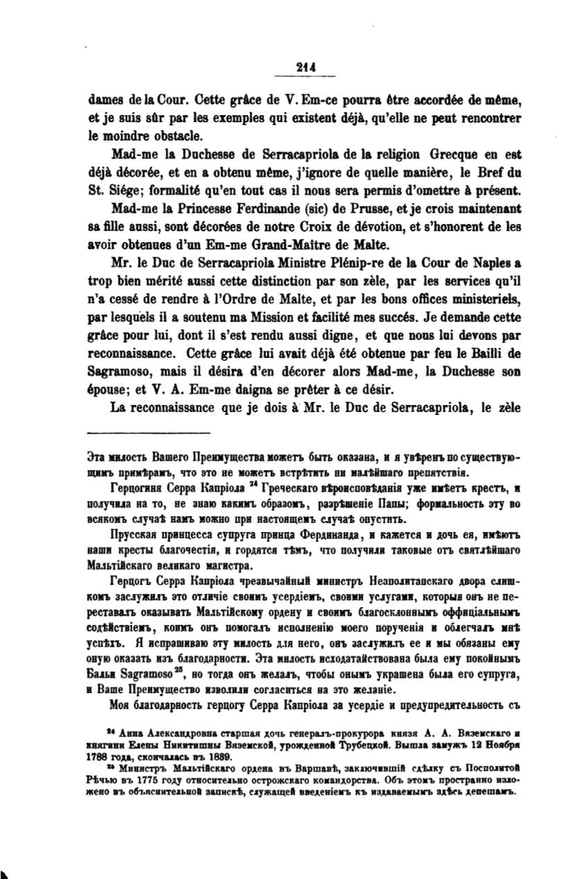 Моя б.lаГОАарвость герцогу Серра Капрiо.1а за усердiе и предуореАJIТе.lьность съ