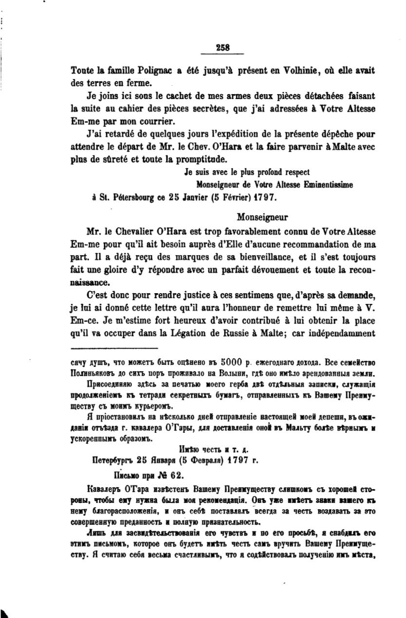 Rава.1еръ О'Гара извtстенъ Вашему Препуществу с.пшко•ъ съ