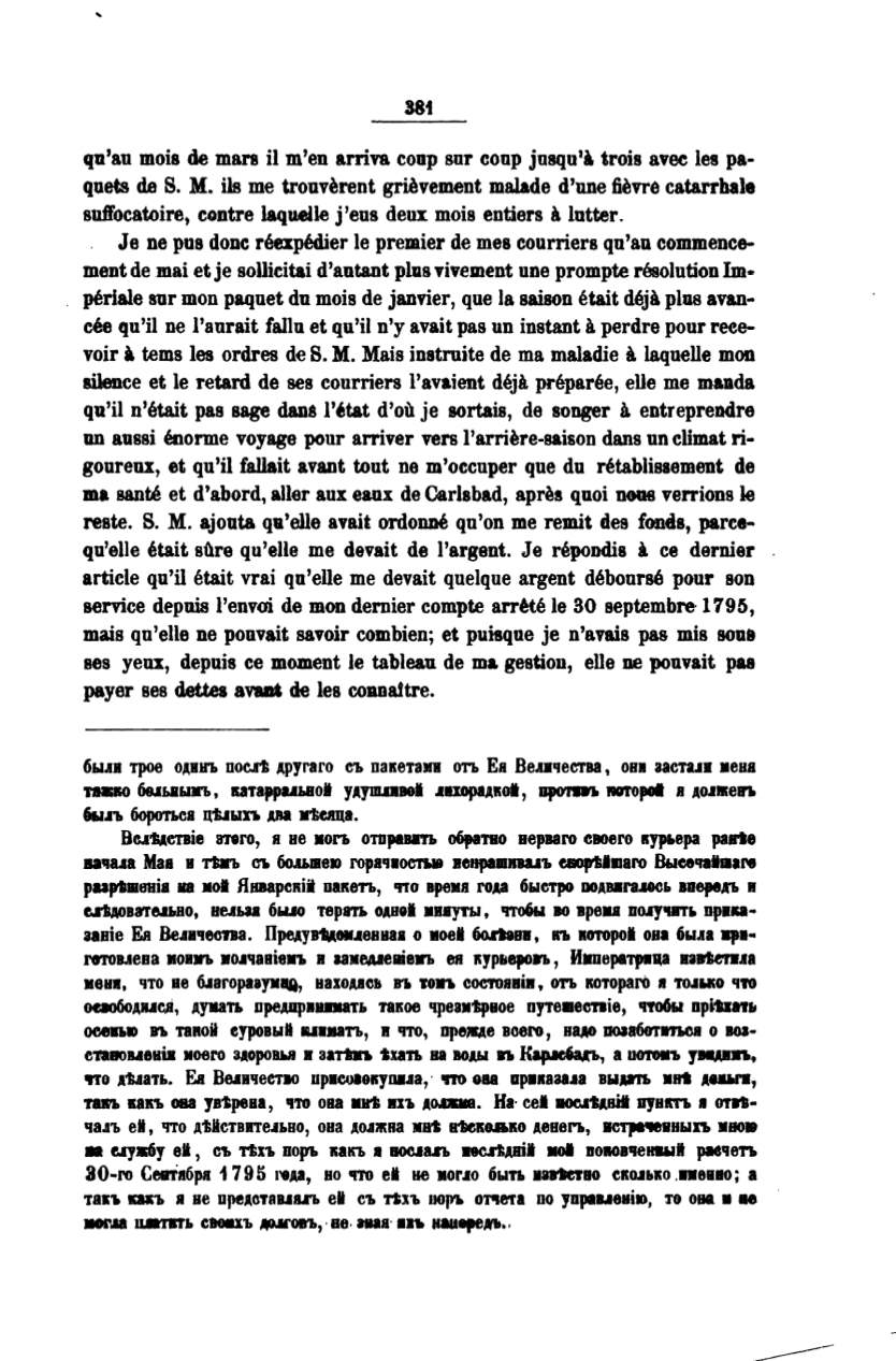 ajouta qu'elle avait ordonne qu'on me remit des fonds, parce–