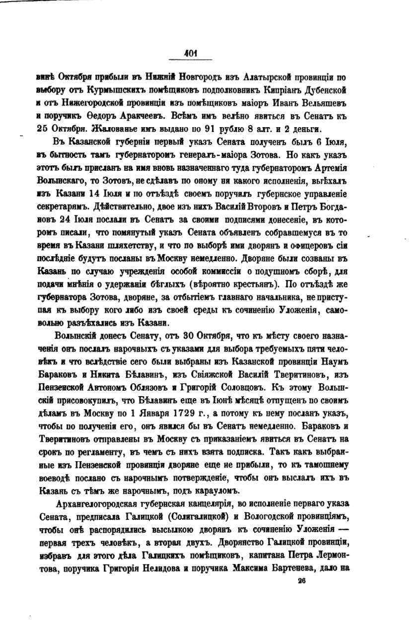 избравъ Jf.JЯ этого дi:.la Га.nщквхъ помtщиковъ, капитана Петра Лермон